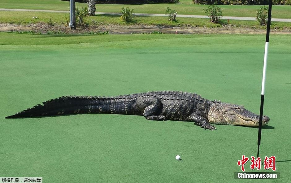 关键词:高尔夫球场现鳄鱼 美洲鳄 4米长巨大鳄鱼