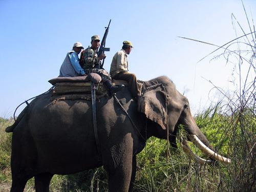 资料图:尼泊尔陆军将驯化大象用于边境巡逻。