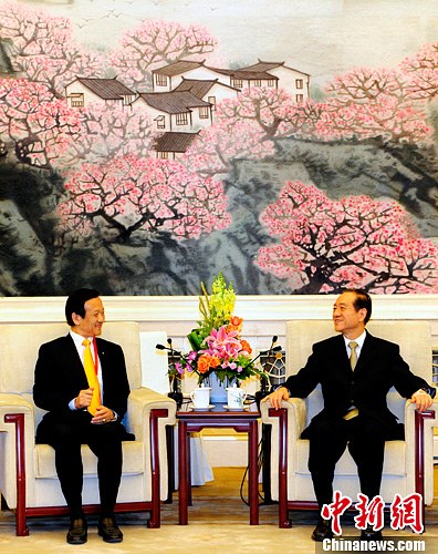 4月21日下午,全国政协副主席韩启德在人民大会堂会见了以澳门归侨总会会长刘艺良为团长的澳门归侨总会访问团一行。国务院侨办主任裘援平、副主任谭天星陪同会见。中新社发 张勤 摄
