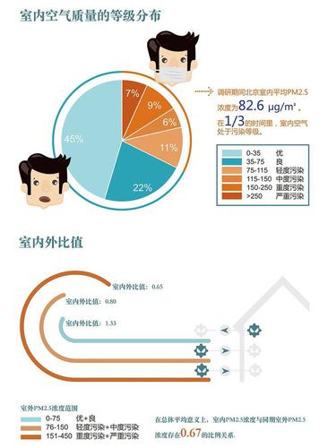 调研结果显示,在采样时间段内,北京室内平均PM2.5浓度为82.6微克/立方米,属于轻度污染水平,且约有三分之一的时间室内空气处于污染状态,即PM2.5大于75微克/立方米。