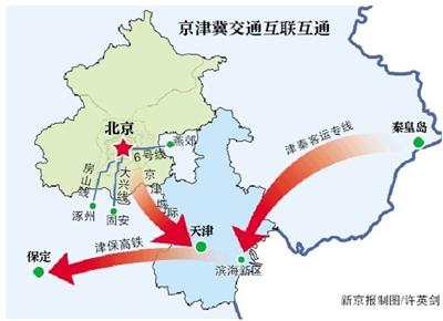 新京报讯 据央视报道,《京津冀协同发展规划纲要》提出京津冀交通一体化,三地交通互联互通,将来形成1小时都市生活圈。其中规划将北京地铁6号线通至河北燕郊、大兴线通至河北固安、房山线通至河北涿州。