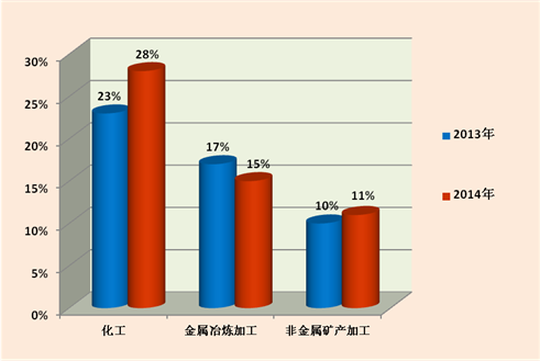 图3 2013年、2014年三大污染行业举报占比
