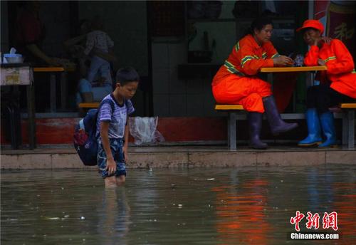 关键词:广西暴雨 柳州暴雨 孩子涉水上学 街道积水