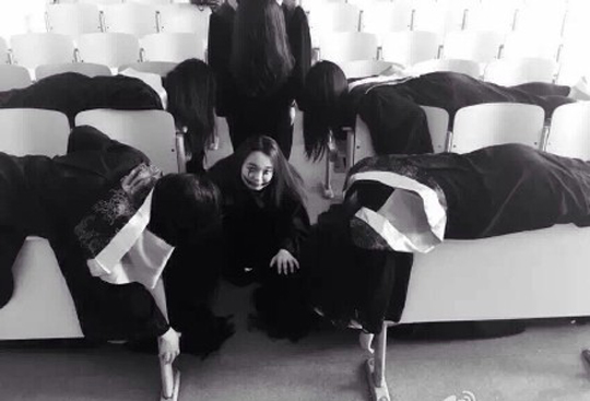 大学生拍女鬼毕业照 又跪又爬"灵异"妆容吓人