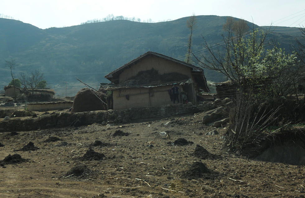 他和母亲住的茅草房已有几十年历史,是用树枝、竹片拼成的,缝隙里抹着些牛粪,寒风和光线从无数孔洞透进来。