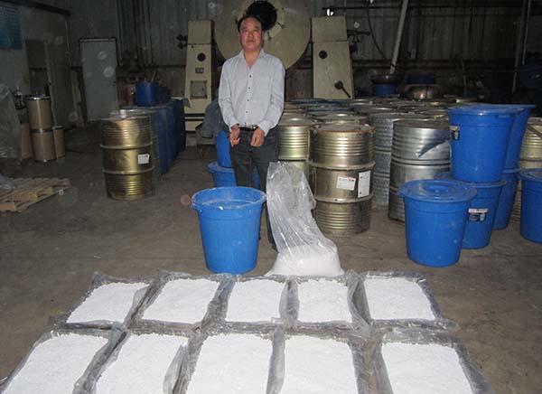 2013年5月左右,原本在江苏盐城开化工厂的陈国良等人按照陆咏提供的生产配方和工艺,在渭南市租用的化工厂房内试制20余次,得到了仅是纯度不高的半成品,呈黑红色。