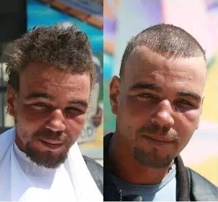 理完发后流浪汉可以说判若两人。