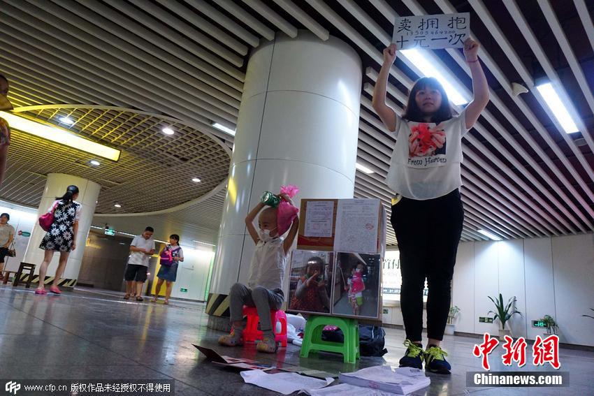 关键词:女子地铁卖拥抱救女儿 每次10元
