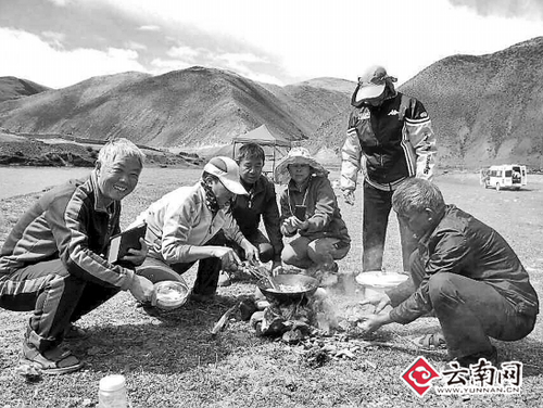 毛世方说,此次徒步进藏他们做了充分准备,携带了一辆保障车,中午饭都是队员自己在行进途中做的。在徒步中大家都有高原反应,只是每个人轻重不一。“在徒步过程中,时常遇到年轻人要拉着我们拍照留念,我们成了这条路上的一道靓丽风景线。”