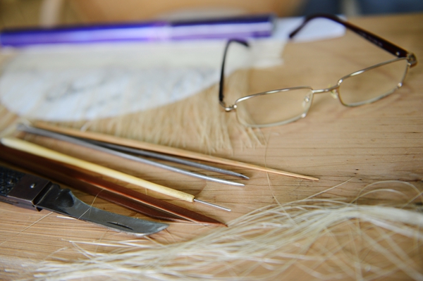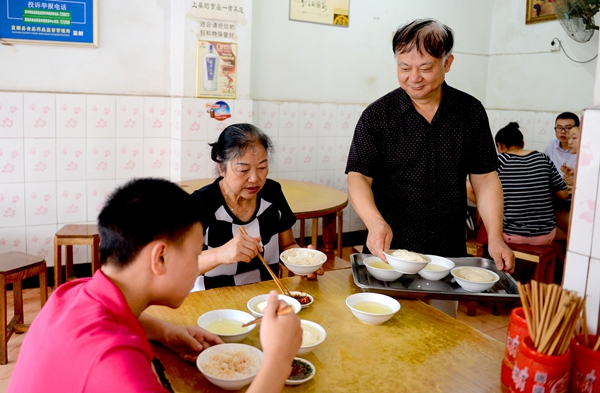 龚道勇和妻子在辅导女儿龚倩制作龚扇