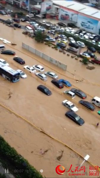 当天,福州市区秀峰路积水严重,多辆车被淹。福飞北路多段积水;北二环多颗大榕树被台风刮到,堵塞两条机动车道和一条非机动车。市民何小姐反映,梅峰路多处严重积水,多车抛锚,梅峰沿二环往屏西方向也是多段积水,有车抛锚,也有很多车堵在屏西和二环交接口!因车子抛锚的她发文称“风大雨大,回家的路趟着走,分分钟被吹飞的赶脚”。家住福州东水路口一小区的网友小鑫家中被淹,具有娱乐精神的他拿出家中孩子的澡盆让小朋友在家体验“泛舟”乐趣。