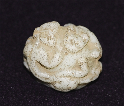 于先生收藏的颗琉璃珠子上面刻着螭龙的图案,有着奋力向上的升腾之势,寓意前途顺畅,大业有成,事业如日中天。同时,螭龙的“龙”谐音于“隆”,寓意生意兴隆、子孙兴隆。 因此作为帽顶子的图案寓意十分吉祥,广受人们喜爱。在清代,有类似造型的琉璃珠也被用作香炉顶子,也就是香炉的抓手。较为可惜的是,螭龙在雕刻的时候没有采用镂空的雕刻方法,否则整体造型则更加灵动。同时,由于保存不当,导致琉璃珠表面雕刻的图案有几处断裂的地方,影响到了收藏的价值。(李娟)