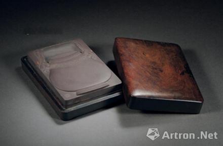 陈端友制砚在砚材使用上多用端石,兼用蒦村石,而较少用歙石。选用的端石多出自名坑,石质细腻坚实。另外值得一提的是,陈端友制砚的砚盒也是陈端友手制。砚盒大多选用红木,选料厚实,依砚形而设计砚盒造型,并以整料挖制。不少砚盒上有题铭和落款。