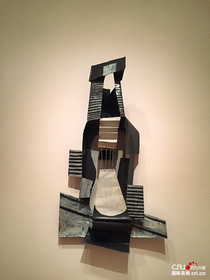 吉他的塑性如同附有幽灵般,看似被切块,却并无容积或深度,也不必指向外在现实中具体的真实存在。从作品中不难发现,毕加索喜欢形状诡异的拼贴多于连接紧密、流畅的结构。这把纸板吉他和后来创作的金属翻版(也是展品之一)均跻身20世纪最具影响力的雕塑作品之列。
