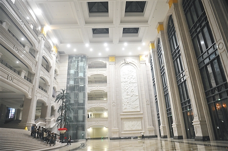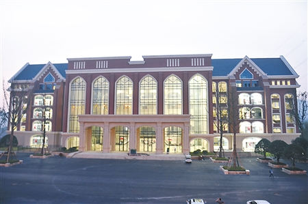 昨日下午,记者来到该学校,还没走到大门口,就能看到好几栋显眼的欧式建筑,部分正在施工。记者首先来到综合楼(教学楼),走进大厅,便被它的气势所震撼。学校相关工作人员告诉记者,大厅足有5层楼高,共27米。