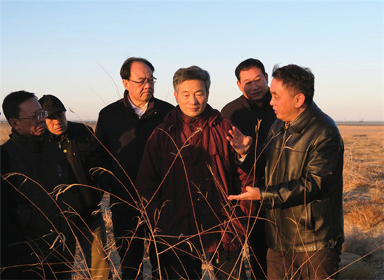 全国政协副主席、民进中央常务副主席罗富和,全国政协副秘书长、民进中央副主席朱永新率民进中央调研组,于11月24日至26日赴甘肃省敦煌市,就生态文明建设和沙产业发展开展调研。图为调研组考察伊塘湖防沙治沙示范林。