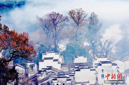 11月30日消息,时下正值初冬时节,在中国最美乡村江西婺源乡村,白墙黛瓦,层林尽染,五彩缤纷的树叶与萦绕飘逸的晨雾相应成景,宛如人间仙景,美不胜收。 卓忠伟 摄