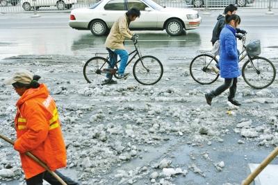冯 处长说,鉴于以上种种情况,出现了个别环卫工向道路上抛雪的现象。这是不允许的,一旦发现,他们会找到其所属的领导进行制止,但有些环卫工为了让辖区内的 积雪尽快消除,出现偷偷抛雪的情况,他们也无法全面监控和管理。但据他们了解,向道路上抛雪的人,环卫工人只是一小部分,多数是沿街单位。
