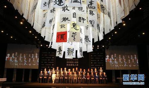 11月30日,在首尔,中日韩三国名人合影。当日,在韩国首尔举行的"东北亚名人会"第十次会议发布《中日韩共用常见808汉字表》新书,成为名人会十年历史中最重要的成果之一。新华社记者姚琪琳摄