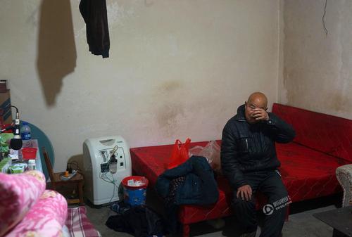 1989年,18岁的何开宏跟随村里人一起去了洛南陈耳金矿打工,成为村里第一批在外“发财”的人。谁知道没过几年,村里几位在金矿的老员工,全患上了尘肺病,连种庄稼都困难,在金矿打工挣来的钱都花在医药费上了。2009年,何开宏彻底失去了劳动力,几乎成了“废人”,两个娃娃也随之辍学了。图为11月20日,几位在村里义诊的尘肺病专家来到何开宏家里看望。