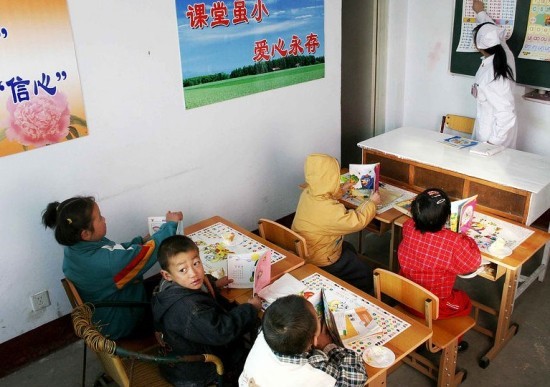 山西临汾一家艾滋病医院,几名孩子正在护士的指导下上课。当时,有6名由母婴传染艾滋病的儿童,在该院接受国家的免费治疗。医院同时还专门为他们开设小课堂,并提供课本,但在把病治好之前,他们无法离开医院。