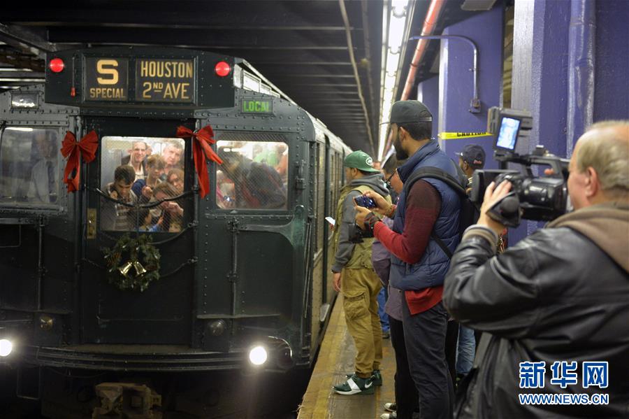 12月13日,市民在纽约曼哈顿第二大街地铁站参观半个世纪以前的地铁车厢。新华社记者王雷摄