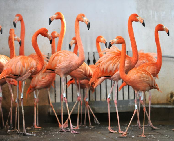 火烈鸟们抱团围着暖气片,不愿离开。 图片来源:视觉中国