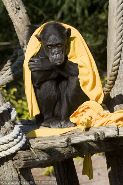 大猩猩取暖的模样也十分霸气。 图片来源:视觉中国