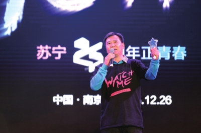 苏宁此前刚刚宣布接手江苏足球队。前晚,国脚吴曦和吉翔也赶到晚会现场助阵,与此同时,苏宁的足球战略也浮出水面。苏宁将在江苏省建造一批足球场,并向社会开放,还将加大足球后备力量的培养,开设PPTV足球慕课频道,举办足球青训夏令营。