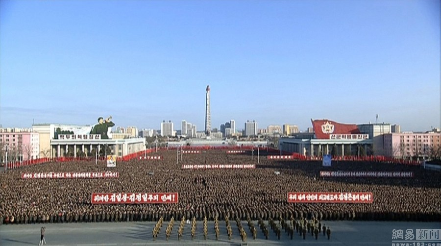 朝鲜民众广场集会 誓达金正恩新年讲话目标