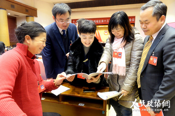 图为委员们在一起就李琼委员《实施“校车工程”助力西城区建设国际一流和谐宜居之都》的提案各抒己见。贾宁 刘彤摄