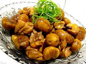 材料:栗子300~400g,鸡1只,冬菇50g,生姜4片。