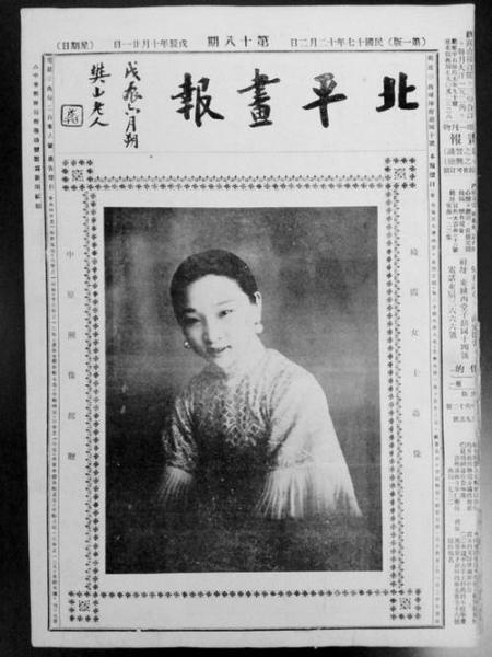 1928年12月2日出版的《北平画报》,封面就是“绮霞女士造像”。那时赵四小姐年方16岁。