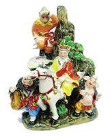 这件摆件瓷器造型优美,布局精巧,制作细腻,构图疏朗,画工精细,作色淡雅清新,人物塑造栩栩如生,场景贴切自然,生动再现了唐僧师徒四人西行 取经的艰辛之旅。把玩欣赏之余,让人从吴承恩《西游记》“山高自有客行路,水深自有渡船人。一叶浮萍归大海,人生何处不相逢。”诗句中得到无穷回味。