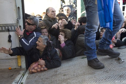 原标题:希腊农民免费发放水果蔬菜 遭大爷大妈哄抢