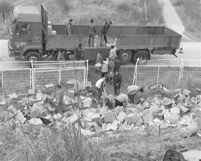 当天下午5时,一辆装满三十六吨豆油的大货车,行驶至宁通公路南京六合山北立交桥上,货车司机突然发现立交桥护栏下蹿出来一条小狗,货车司机赶忙紧急刹车避让,可是由于刹车太急,加之立交桥坡度大,弯道又窄,大货车一下子失控造成侧翻,车厢里面的三十六吨豆油连同包装箱,“呼噜”一下子滚到立交桥沟坎下面,好在沟坎下面有2米高的钢丝护栏,豆油包装箱没有砸到下面路上的车辆和行人。后货车司机和跟车同伴从驾驶室里面爬了出来,所幸两人身体并无大碍。