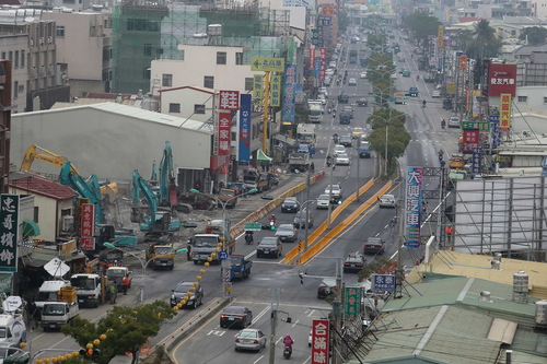 2月15日,受台南地震损坏的台南市永康区永大路二段重铺柏油,恢复通车,附近商铺也陆续开门营业。新华社发