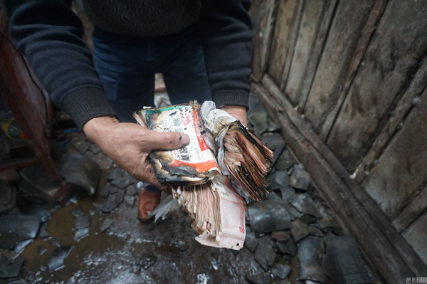 2月21日,四川省内江市东兴区高桥镇一民房发生火灾。火灾发生时,户中有八万元左右的现金尚在里面。消防官兵找到存放现金的地方,利用锄头等工具从火中将现金刨了出来。幸运的是,虽然部分现金被烧毁、烧损,但大部分现金仍能正常使用。