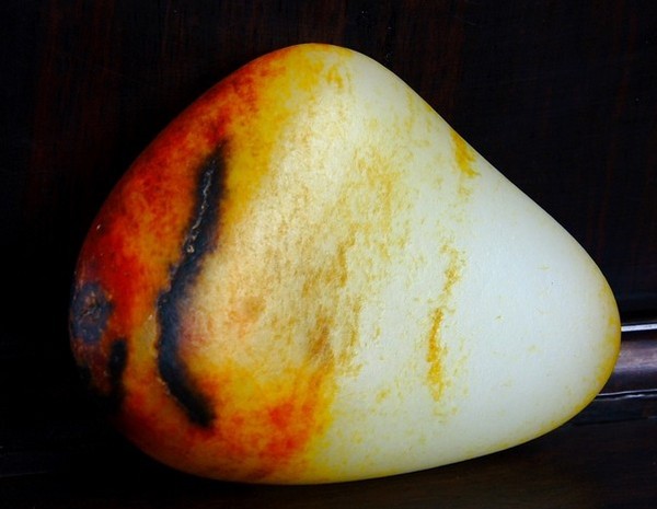 3、 籽料的皮色是很美丽的,籽料的裂却是很重要的鉴别方法,籽料在受到千万年的碰撞后,形成大大小小的裂,这些裂只要不影响到玉石本身就都没问题,那些造假的籽料很少是有裂的,能看出初始磨光的切面。