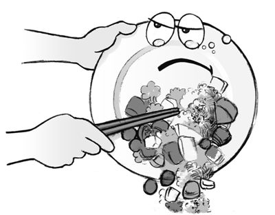 记者在食堂里转了一圈,发现留在桌上的餐盘一半以上都剩了饭菜,真正做到“光盘”的人并不多。“吃饭的人,大都会剩下一些。”负责打扫餐桌、清理餐盘的清洁人员说,“但只有极个别会剩得比较多。”
