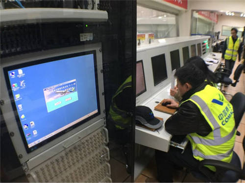 (走进铁鸟试验台)工程师在铁鸟试验台内测试C919飞机的起落架系统。