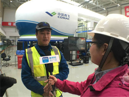 铁鸟工程师韦树辉在向新华社记者介绍铁鸟试验台。