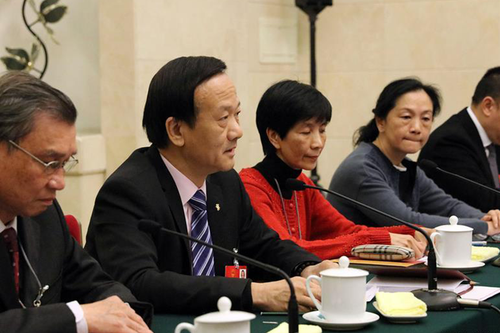 澳门代表团全国人大代表刘艺良(左二)说,“十三五”期间,澳门在“走出去”方面将大有作为,作为海上丝绸之路的重要节点,可以发挥商贸服务平台的作用。正在举行的全国两会上,来自香港、澳门和台湾的代表委员认真审议和讨论政府工作报告和“十三五”规划纲要草案,为国家的发展积极履职,建言献策。香港代表团全国人大代表范徐丽泰说,回归以来,香港背靠祖国内地获得很好发展,港人大多明白“合则两利、分则两害”。香港有今天享誉全球的地位,靠的是经济实力、是专心发展。当前的香港,也要明白这个道理,机遇已经摆在面前,要自己努力去把握。正在举行的全国两会上,来自香港、澳门和台湾的代表委员认真审议和讨论政府工作报告和“十三五”规划纲要草案,为国家的发展积极履职,建言献策。香港代表团全国人大代表吴秋北说,机会不等人,得看我们自己是否把握得住,香港应认真思考如何搭上“十三五”这趟“快车”。正在举行的全国两会上,来自香港、澳门和台湾的代表委员认真审议和讨论政府工作报告和“十三五”规划纲要草案,为国家的发展积极履职,建言献策。全国政协委员容永祺在香港52组小组讨论中建议加强香港年轻人到内地创业的宣传力度、配套支持等,让更多香港年轻人愿意到内地创业。正在举行的全国两会上,来自香港、澳门和台湾的代表委员认真审议和讨论政府工作报告和“十三五”规划纲要草案,为国家的发展积极履职,建言献策。澳门代表团全国人大代表梁维特说,随着国家“一带一路”战略的推进和泛珠三角区域合作不断深化,澳门将找到更准确的定位,获得更广泛的机遇。正在举行的全国两会上,来自香港、澳门和台湾的代表委员认真审议和讨论政府工作报告和“十三五”规划纲要草案,为国家的发展积极履职,建言献策。台湾代表团全国人大代表汪毅夫说,两岸民众不会“越走越远”。民众希望的是安定生活、稳定收入、家人平安,两岸关系和平发展能够保证这一切。正在举行的全国两会上,来自香港、澳门和台湾的代表委员认真审议和讨论政府工作报告和“十三五”规划纲要草案,为国家的发展积极履职,建言献策。全国政协委员方方在香港52组小组讨论中说,应思考为什么现在的香港年轻人缺少了父辈的创业精神、思考如何用父辈的创业精神来激励香港年轻人。正在举行的全国两会上,来自香港、澳门和台湾的代表委员认真审议和讨论政府工作报告和“十三五”规划纲要草案,为国家的发展积极履职,建言献策。台湾代表团全国人大代表陈云英说,应当进一步鼓励岛内中青年学者参与在大陆举行的学术活动。正在举行的全国两会上,来自香港、澳门和台湾的代表委员认真审议和讨论政府工作报告和“十三五”规划纲要草案,为国家的发展积极履职,建言献策。澳门代表团全国人大代表崔世平说,澳门经济过于单一化,不利于应对外界的冲击和影响,可以考虑以国家“十三五”规划促进澳门特区五年发展的规划,引领经济适度多元化发展,让经济更具可持续性。正在举行的全国两会上,来自香港、澳门和台湾的代表委员认真审议和讨论政府工作报告和“十三五”规划纲要草案,为国家的发展积极履职,建言献策。