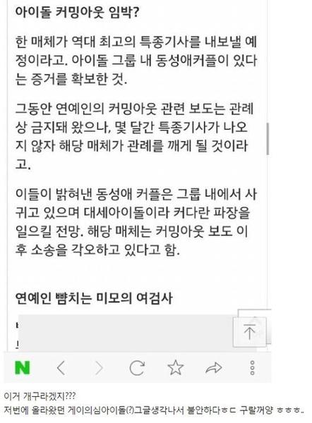 然而,文章中的同性情侣被形容为,同团体内的两名同性成员,且该团是目前炙手可热的大势偶像,消息一出后马上引起大批网友讨论,更有乡民马上联想到2015年时,曾有人爆出某男团偶像是同性恋的消息,引起诸多揣测,只不过由媒体爆出偶像同性恋爱的这个举动,也遭到不少网民讨伐,认为擅自对人强制出柜是件霸凌的行为。