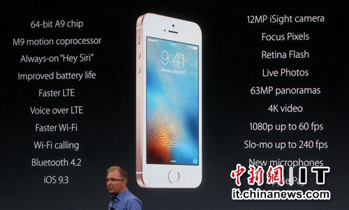 性能上,iPhone SE和iPhone 6S在性能上一样强悍,采用64位A9处理器和M9协动处理器。配备了1200万像素摄像头,能够拍摄4K视频,另外新的画面处理器能够让iPhone SE的图片质量更加优秀。图像处理功能略强于iPhone 6S。苹果强调iPhone SE最大的提升在于电池。