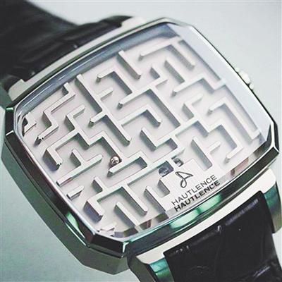 据美国媒体3月30日报道,瑞士奢华手表制造商Hautlence造出了一款极具个性的手表,售价高达1.2万瑞士法郎(约合8.07万元)。这款手表限量生产,分为玫瑰金版和白金版。手表没有标度盘、数字和指针,取而代之的是一个迷宫一样的设计。18k金的迷宫配有超级坚固的蓝宝石玻璃表冠,来阻止迷宫内的一个白金小球掉出来。表带是用缎面路易斯安那鳄鱼皮制成。该公司的官方网站上介绍说,“这款手表的设计是对我们童年时光的重现,远离外面世界的纷扰。”要玩赢这个游戏,佩戴者需要让这个白金小球通过两个小孔中的其中一个离开表盘,然后表冠可以用来触发一个小的机械升力,把这个小球带到第二回合。