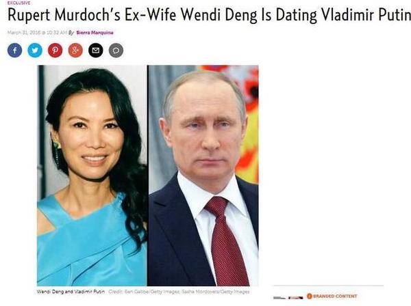 [摘要]美国《US》周刊声称掌握独家消息,指出华盛顿、欧洲与亚洲的政治圈早就八卦传得满天飞,指邓文迪正与普京认真交往中。