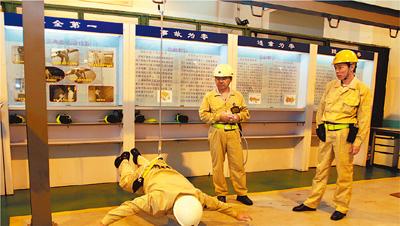 宝钢集团有限公司安全生产体感中心内,员工正接受有限空间作业应急救援培训。李振营摄(人民视觉)