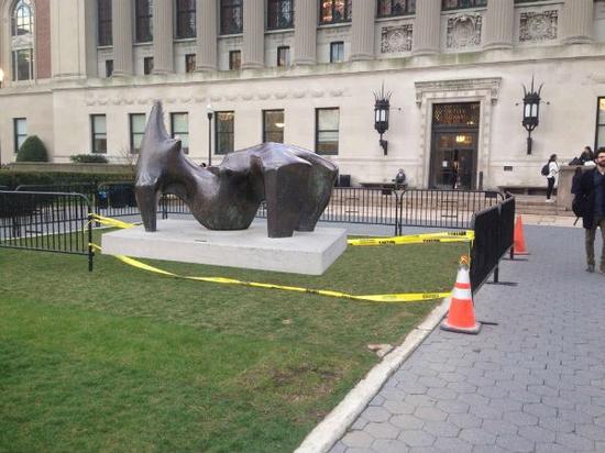 学生进行静坐抗议亨利·摩尔雕塑落户哥大校园