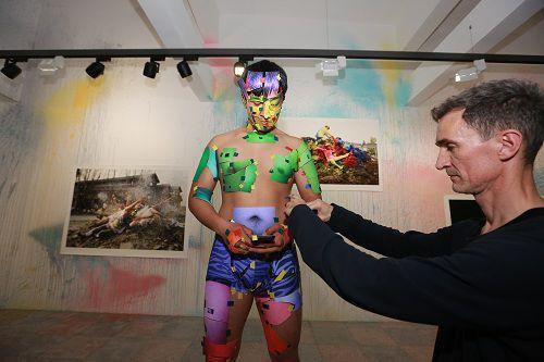 “乌镇的北栅丝厂通过改建工业遗迹成为了全新的艺术场馆,这也作为某种隐喻的元素融入了我在乌镇的艺术创作中。”赫尔宁告诉记者一个有趣的故事:在乌镇布展期间,有不少在现场施工的工人,也被志愿者身上五彩斑斓的色彩吸引。赫尔宁随即让这些普通劳动者也参与到行为艺术体验中来:“工人们也渴望参与,也希望感受艺术。”
